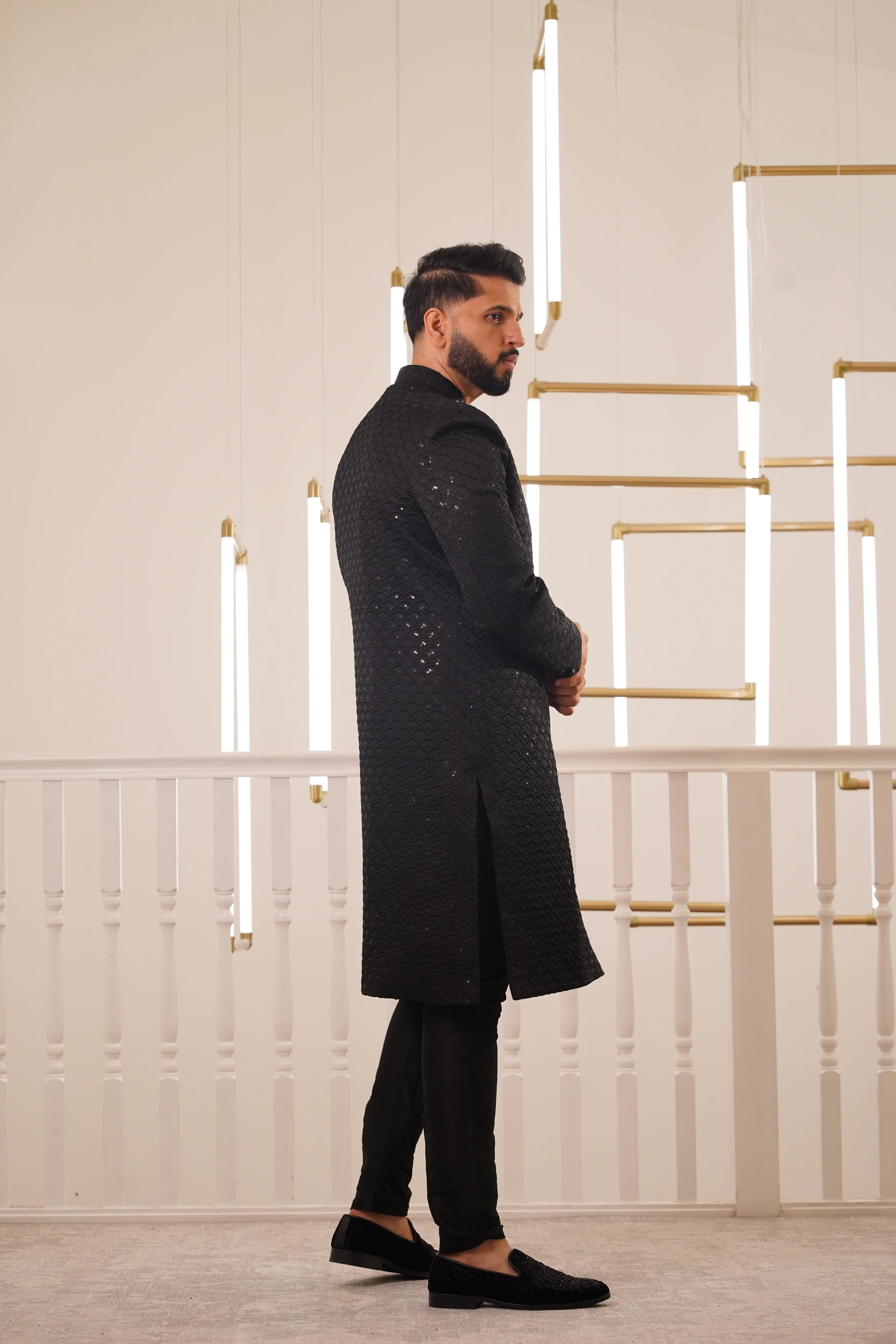 BLACK SEQUENCE EMBROIDERY SHERWANI