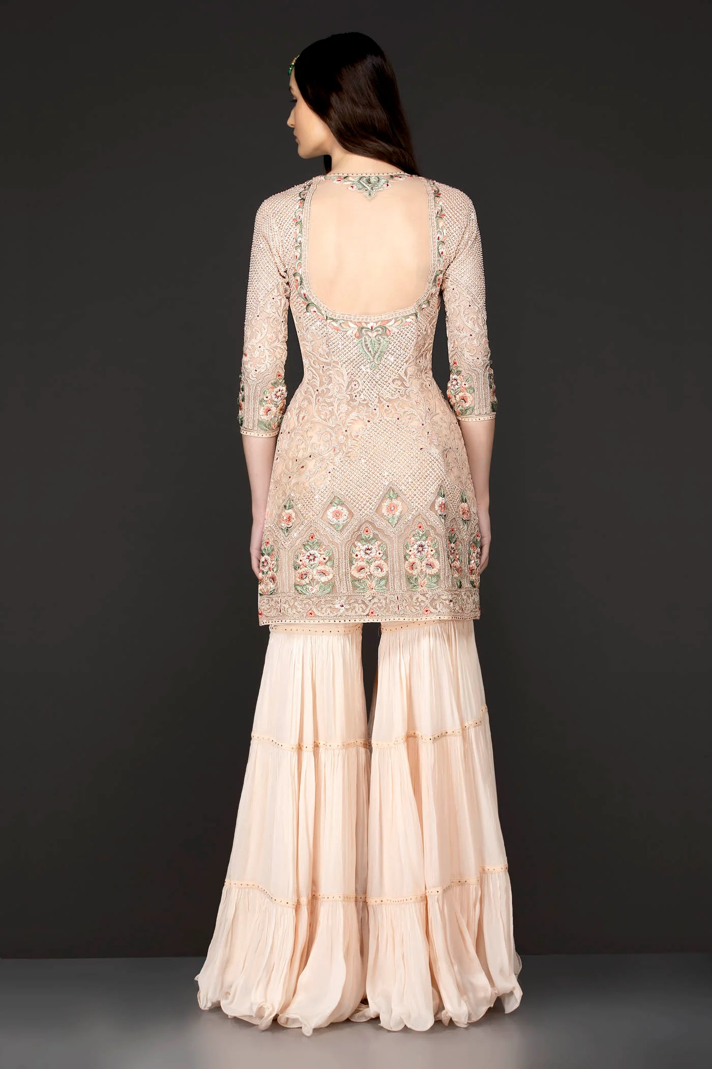 Color: Kameez: Peach Sharara: Peach Dupatta: Peach |