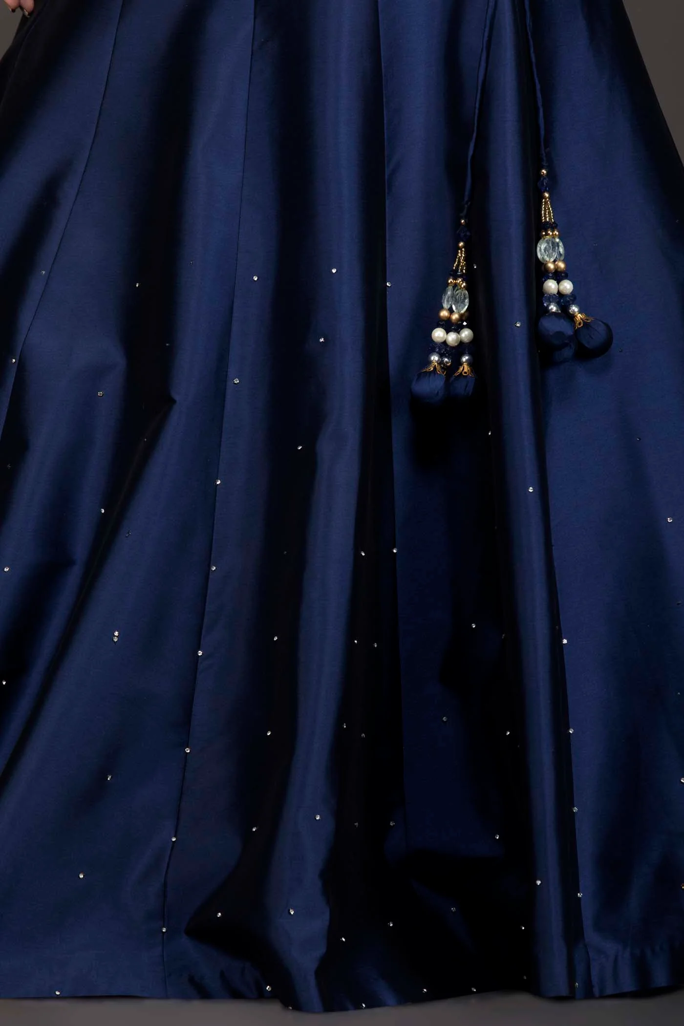 Navy Blue Silk Lehenga And Embriodery Top With Net Dupatta